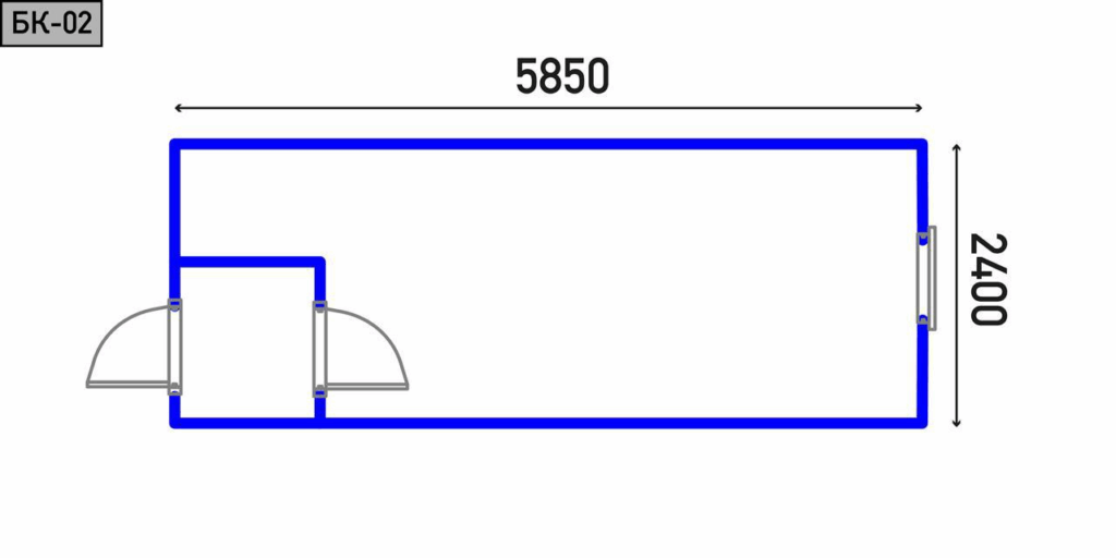 ВНЕШНИЙ РАЗМЕР | 5,85х2,40х2,40 м. (ДхШхВ) Каркас металлический (верхняя и нижняя обвязки, угловые стойки): Швеллер гнутый 100х50х3 мм. окрашен эмалью в синий цвет |