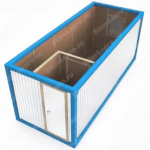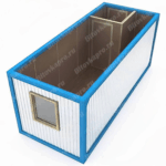 ВНЕШНИЙ РАЗМЕР | 5,85х2,40х2,40 м. (ДхШхВ) Каркас металлический (верхняя и нижняя обвязки, угловые стойки): Швеллер гнутый 100х50х3 мм. окрашен эмалью в синий цвет |