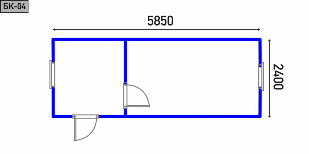 ВНЕШНИЙ РАЗМЕР | 5,85х2,40х2,40 м. (ДхШхВ) Каркас металлический (верхняя и нижняя обвязки, угловые стойки): Швеллер гнутый 100х50х3 мм. окрашен эмалью в синий цвет |