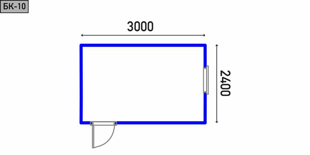 ВНЕШНИЙ РАЗМЕР | 3х2,40х2,40 м. (ДхШхВ) Каркас металлический (верхняя и нижняя обвязки, угловые стойки): Швеллер гнутый 100х50х3 мм. окрашен эмалью в синий цвет |