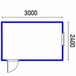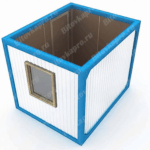 ВНЕШНИЙ РАЗМЕР | 3х2,40х2,40 м. (ДхШхВ) Каркас металлический (верхняя и нижняя обвязки, угловые стойки): Швеллер гнутый 100х50х3 мм. окрашен эмалью в синий цвет |