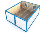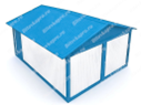 ВНЕШНИЙ РАЗМЕР | 5,85х2,40х2,40 м. (ДхШхВ) Каркас металлический (верхняя и нижняя обвязки, угловые стойки): Швеллер гнутый 100х50х3 мм. окрашен эмалью в синий цвет |