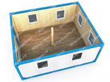 ВНЕШНИЙ РАЗМЕР | 5,85х2,40х2,40 м. (ДхШхВ) Каркас металлический (верхняя и нижняя обвязки, угловые стойки): Швеллер гнутый 100х50х3 мм. окрашен эмалью в синий цвет |