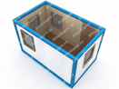 ВНЕШНИЙ РАЗМЕР | 5,85х2,40х2,40 м. (ДхШхВ) Каркас металлический (верхняя и нижняя обвязки, угловые стойки): Швеллер гнутый 100х50х3 мм. окрашен эмалью в синий цвет |
