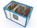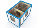 ВНЕШНИЙ РАЗМЕР | 5,85х2,40х2,40 м. (ДхШхВ) Каркас металлический (верхняя и нижняя обвязки, угловые стойки): Швеллер гнутый 100х50х3 мм. окрашен эмалью в синий цвет |